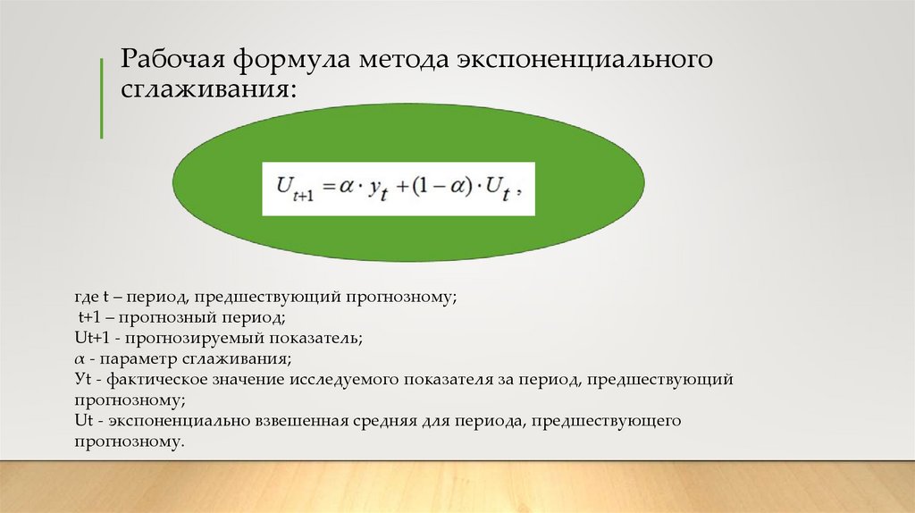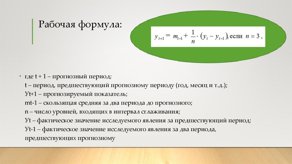 Рабочая формула:• где t + 1 – прогнозный период;