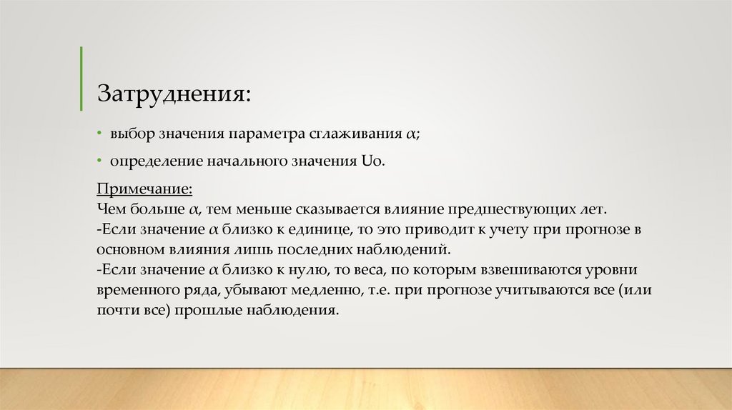 Затруднения:• выбор значения параметра сглаживания α;