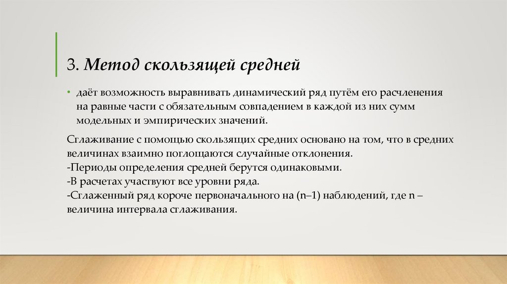 3. Метод скользящей средней• даёт возможность выравнивать динамический ряд путём его расчленения