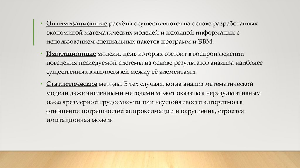 • Оптимизационные расчёты осуществляются на основе разработанныхэкономикой математических моделей и исходной информации с