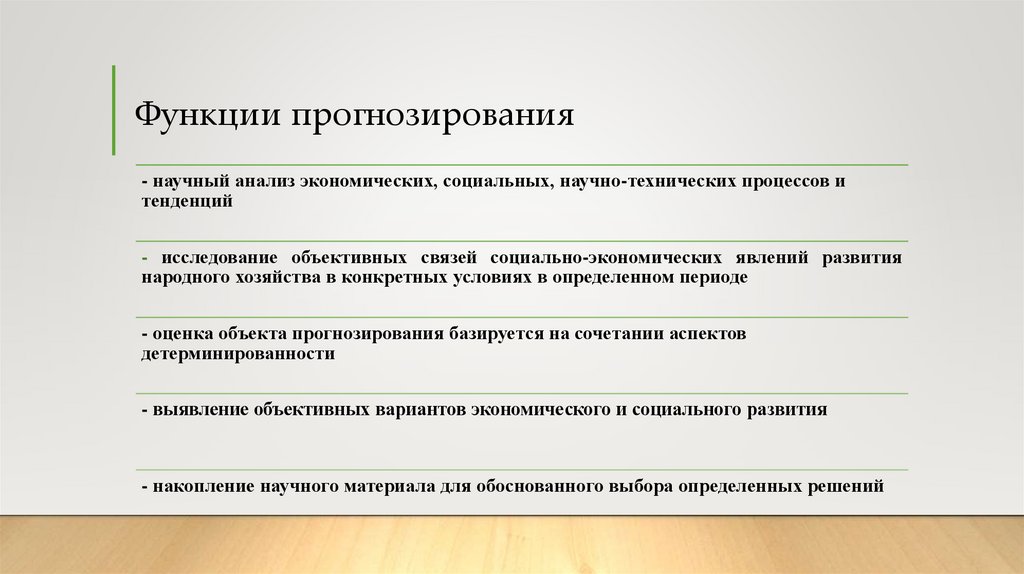 Функции прогнозирования- научный анализ экономических, социальных, научно-технических процессов и