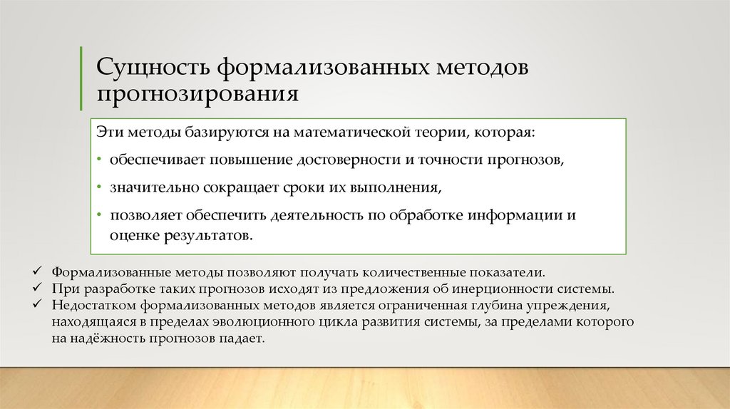 Сущность формализованных методовпрогнозирования