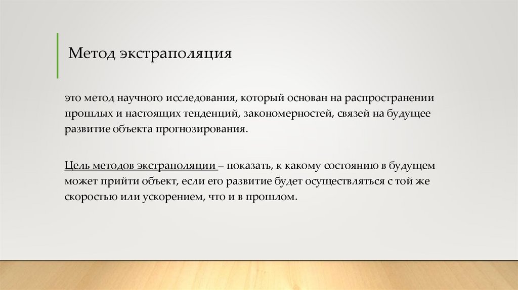 Метод экстраполяцияэто метод научного исследования, который основан на распространении