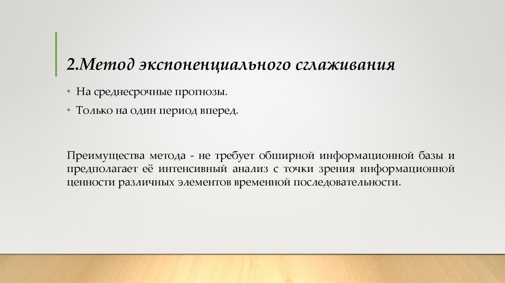 2.Метод экспоненциального сглаживания• На среднесрочные прогнозы.