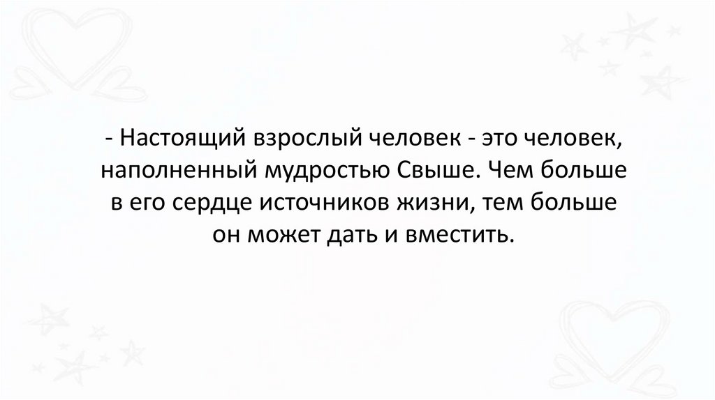 - Настоящий взрослый человек - это человек,наполненный мудростью Свыше. Чем больше