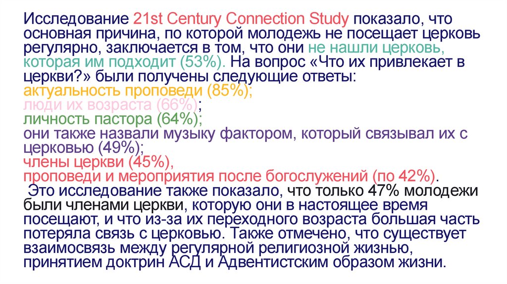 Исследование 21st Century Connection Study показало, чтоосновная причина, по которой молодежь не посещает церковь