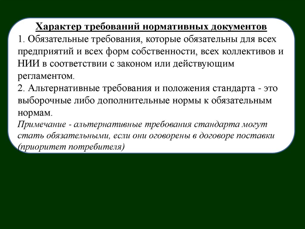 Характер требований нормативных документов1. Обязательные требования, которые обязательны для всех