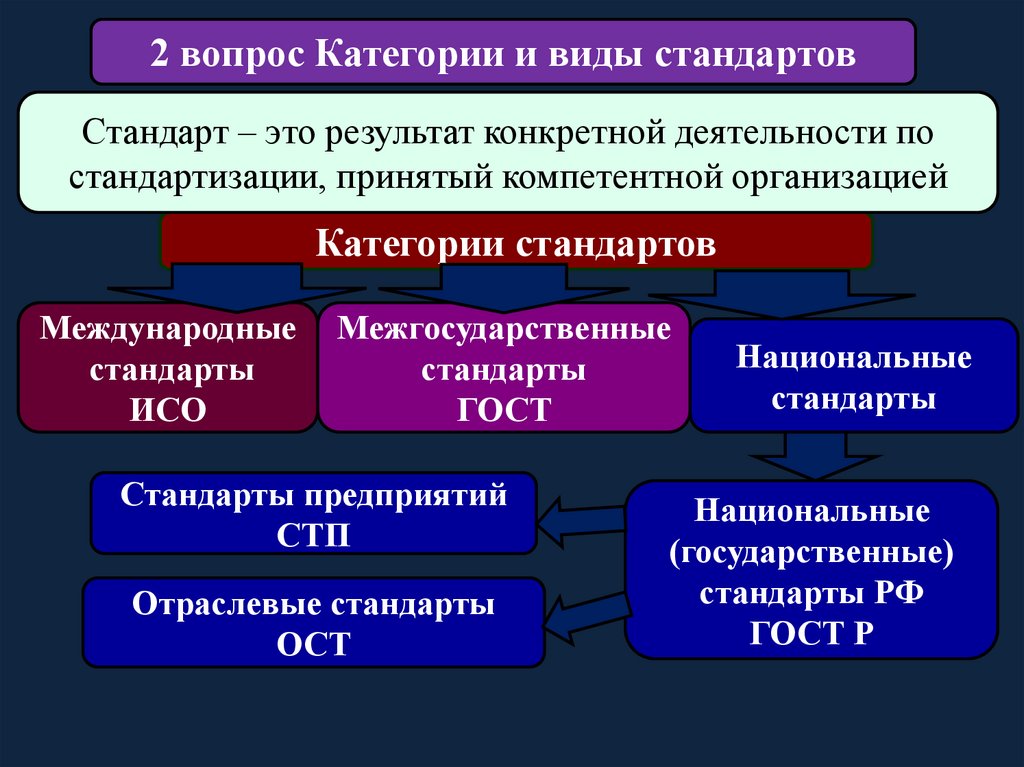 2 вопрос Категории и виды стандартовСтандарт – это результат конкретной деятельности по