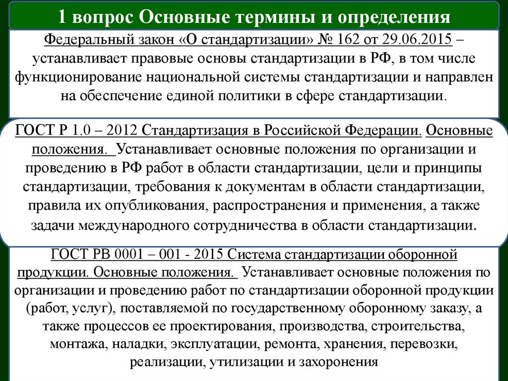 1 вопрос Основные термины и определенияФедеральный закон «О стандартизации» № 162 от 29.06.2015 –