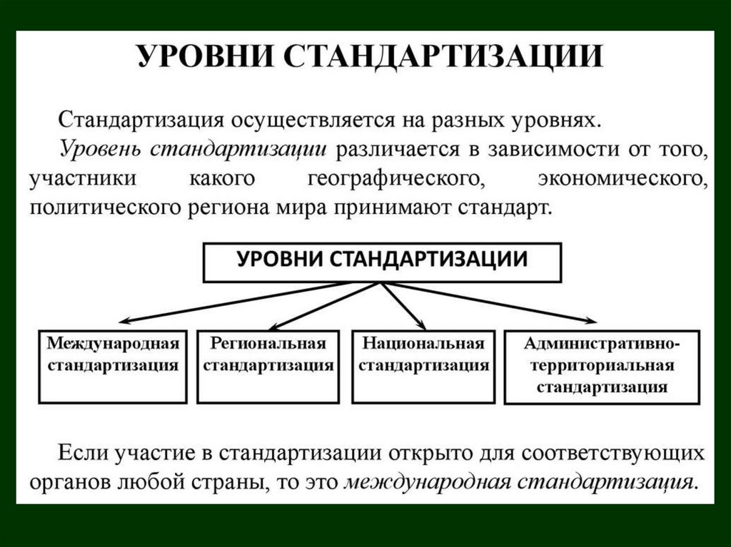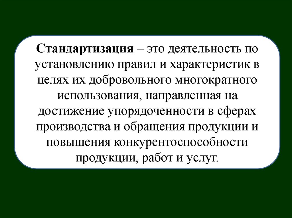 Стандартизация – это деятельность поустановлению правил и характеристик в