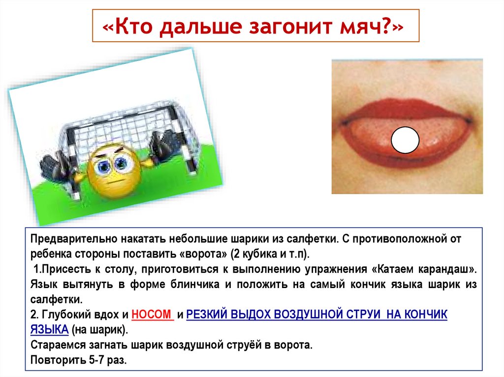 Язык вытянуть в форме блинчика и положить на самый кончик языка шарик из