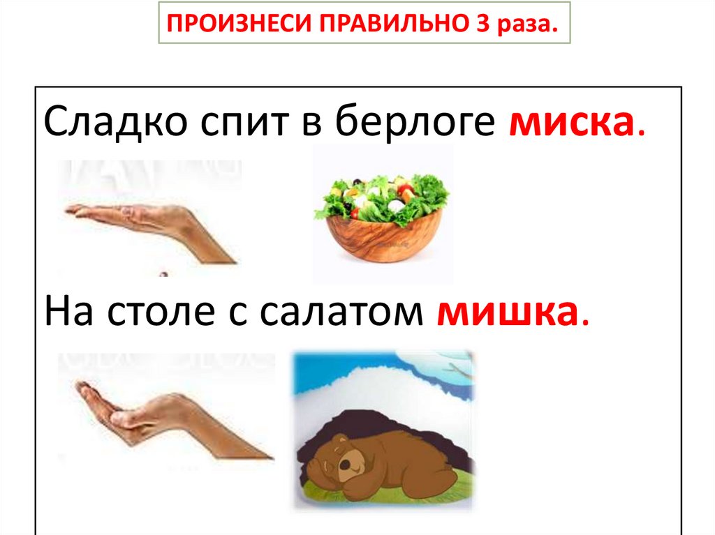 ПРОИЗНЕСИ ПРАВИЛЬНО 3 раза.Сладко спит в берлоге миска.
