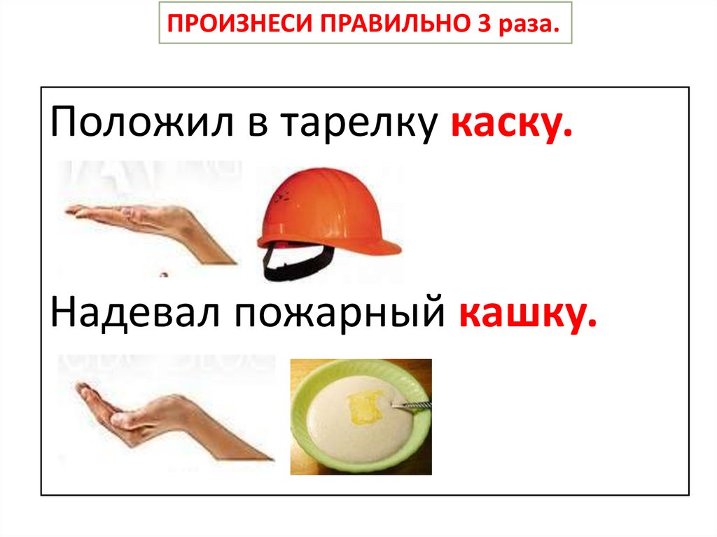 ПРОИЗНЕСИ ПРАВИЛЬНО 3 раза.Положил в тарелку каску.
