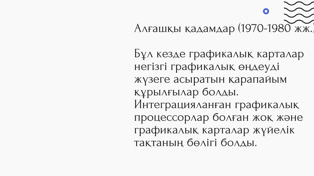 Алғашқы қадамдар (1970-1980 жж.)Бұл кезде графикалық карталар