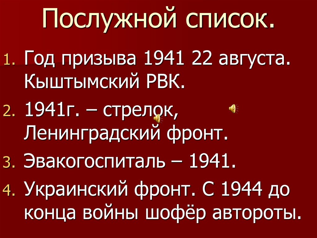 1. Год призыва 1941 22 августа.Кыштымский РВК.