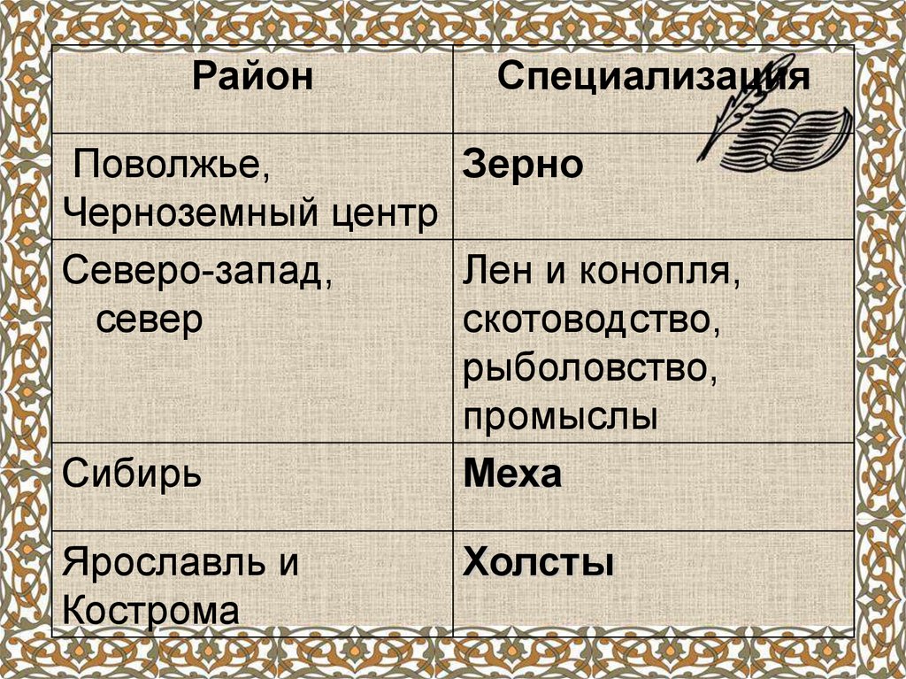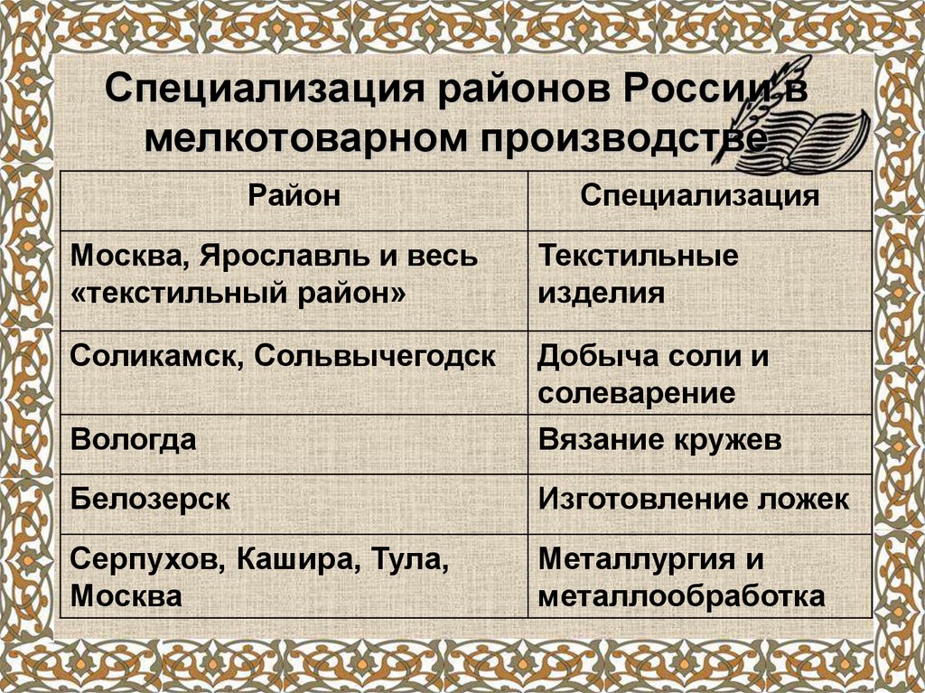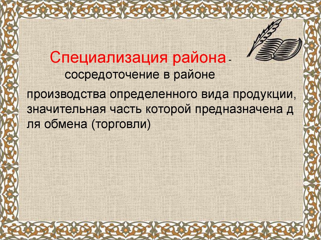 Специализация района сосредоточение в районепроизводства определенного вида продукции,