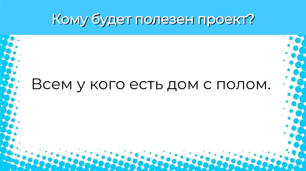 Кому будет полезен проект?Всем у кого есть дом с полом.