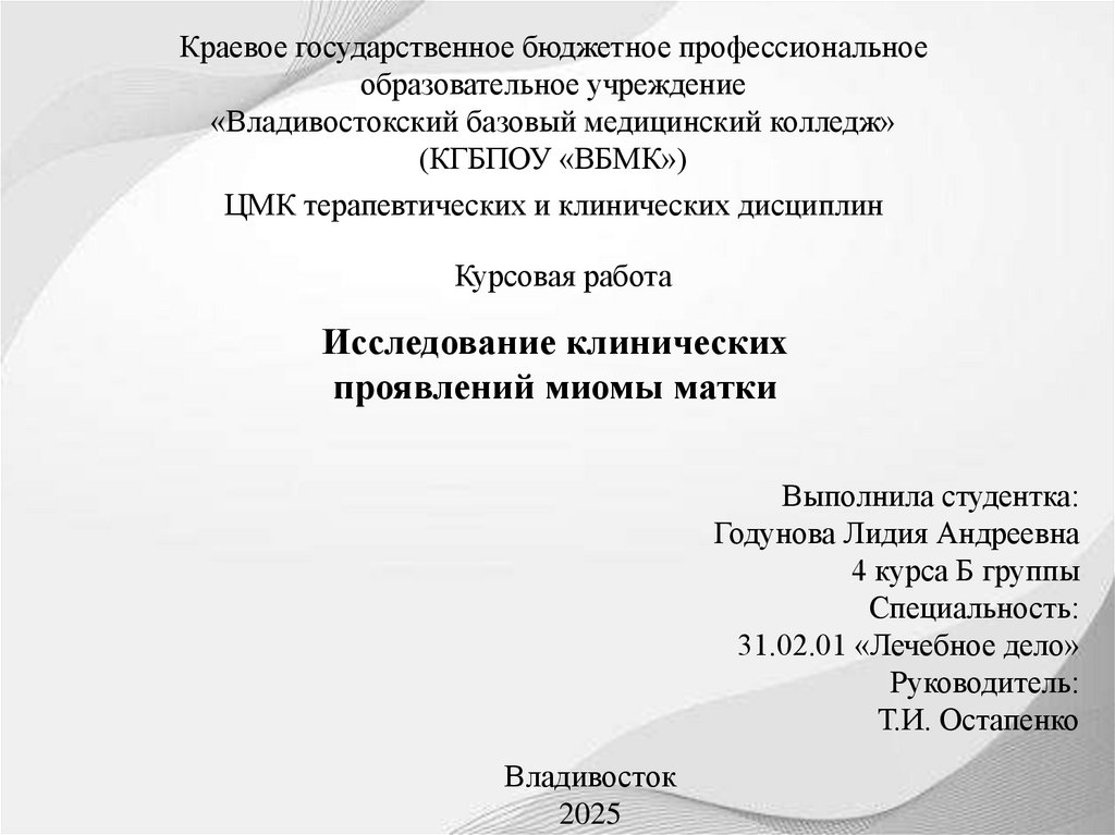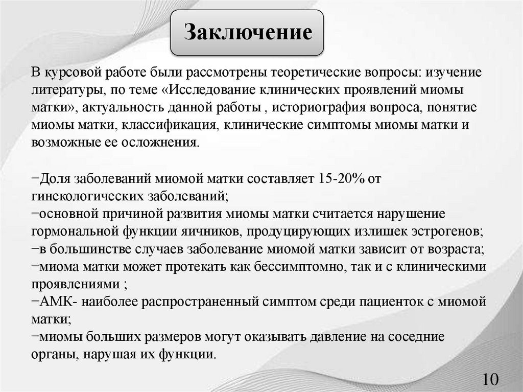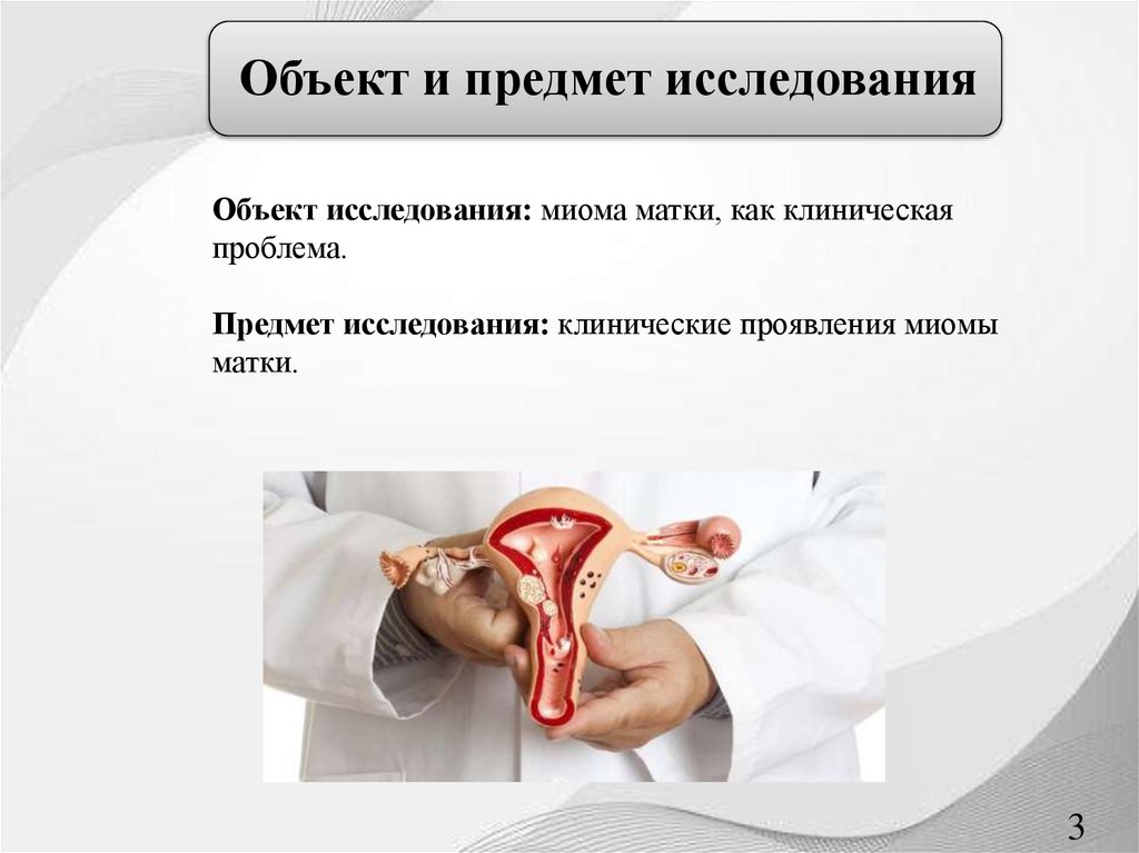 Объект и предмет исследованияОбъект исследования: миома матки, как клиническая