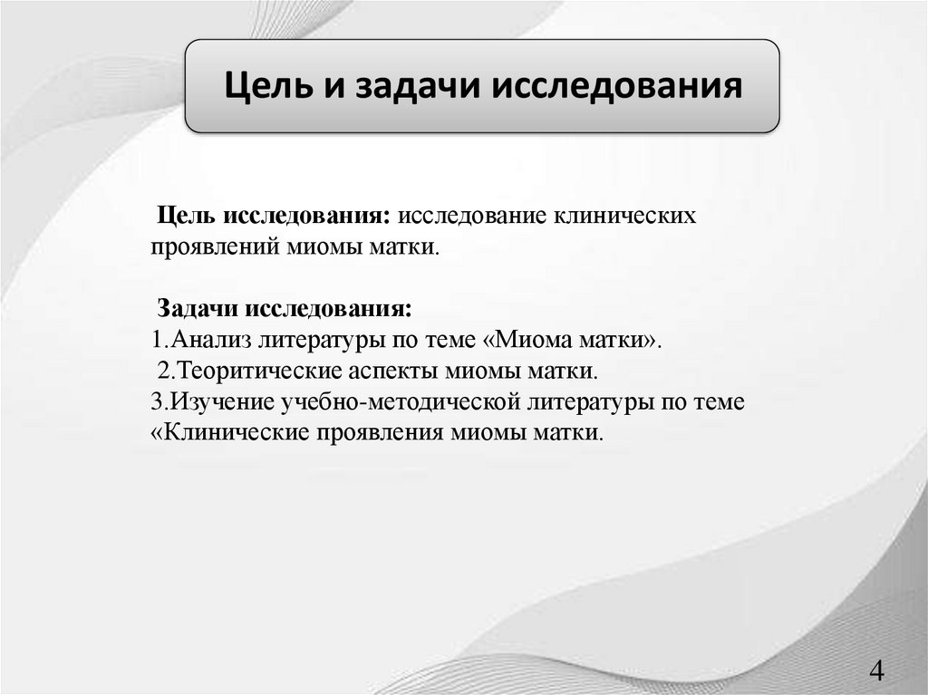 Цель и задачи исследованияЦель исследования: исследование клинических