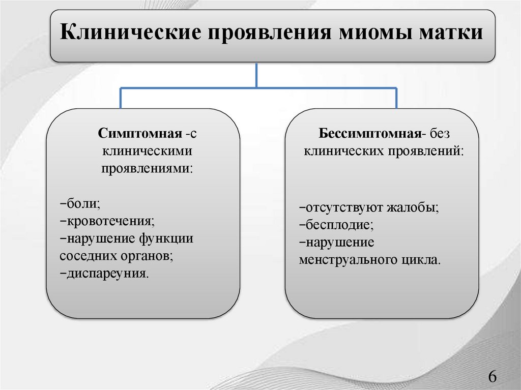 −миома матки может протекать как бессимптомно, так и с клиническими