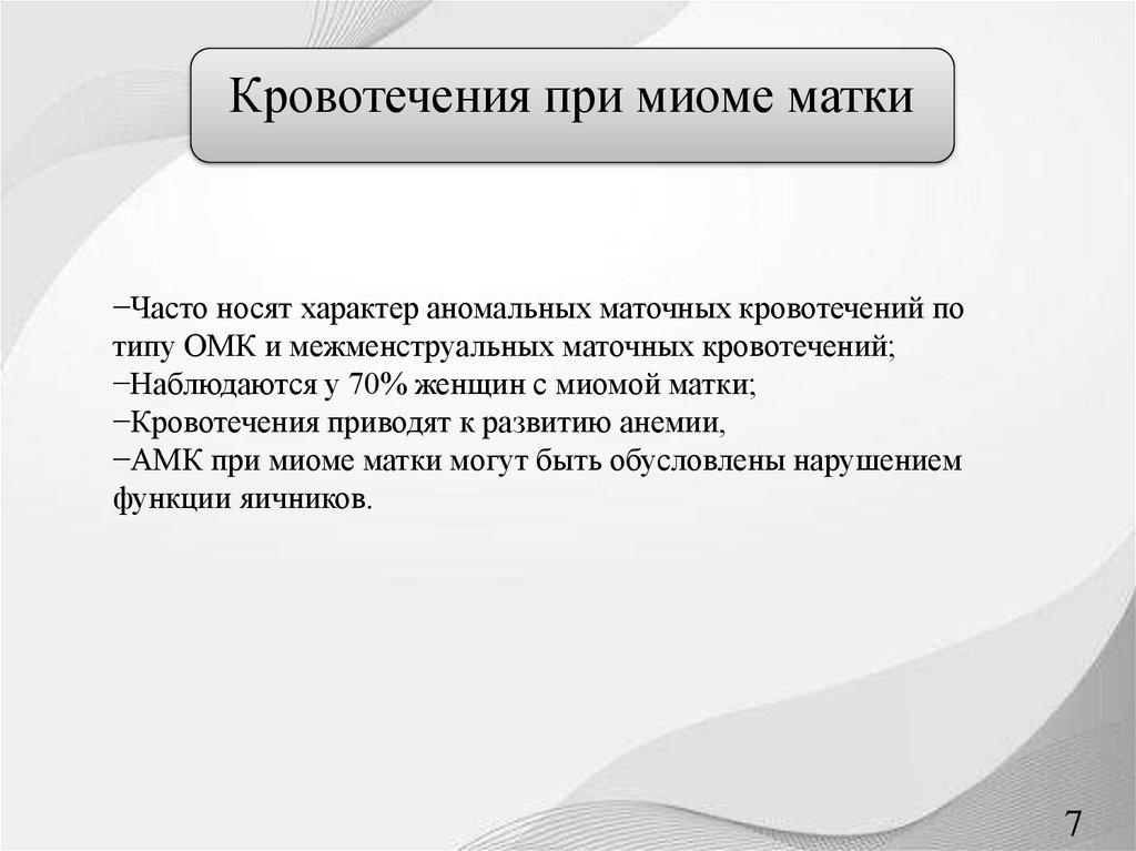 Кровотечения при миоме матки−Часто носят характер аномальных маточных кровотечений по