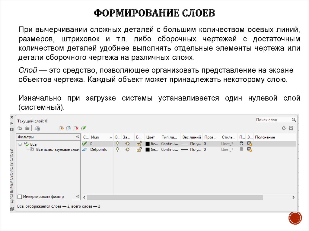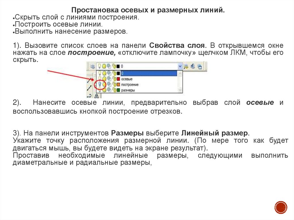 построение, осевые, размеры (в слое 0 будем чертить основные линии, в