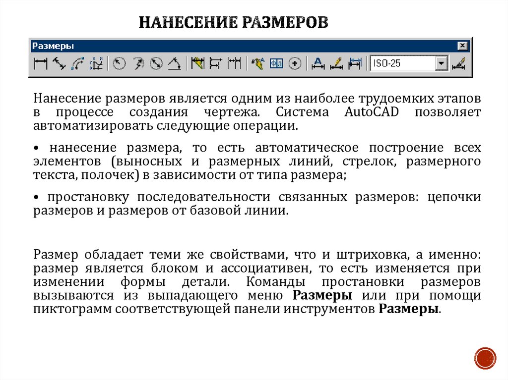 размер, выноска, допуск, штриховка, вхождение блока или внешней ссылки,