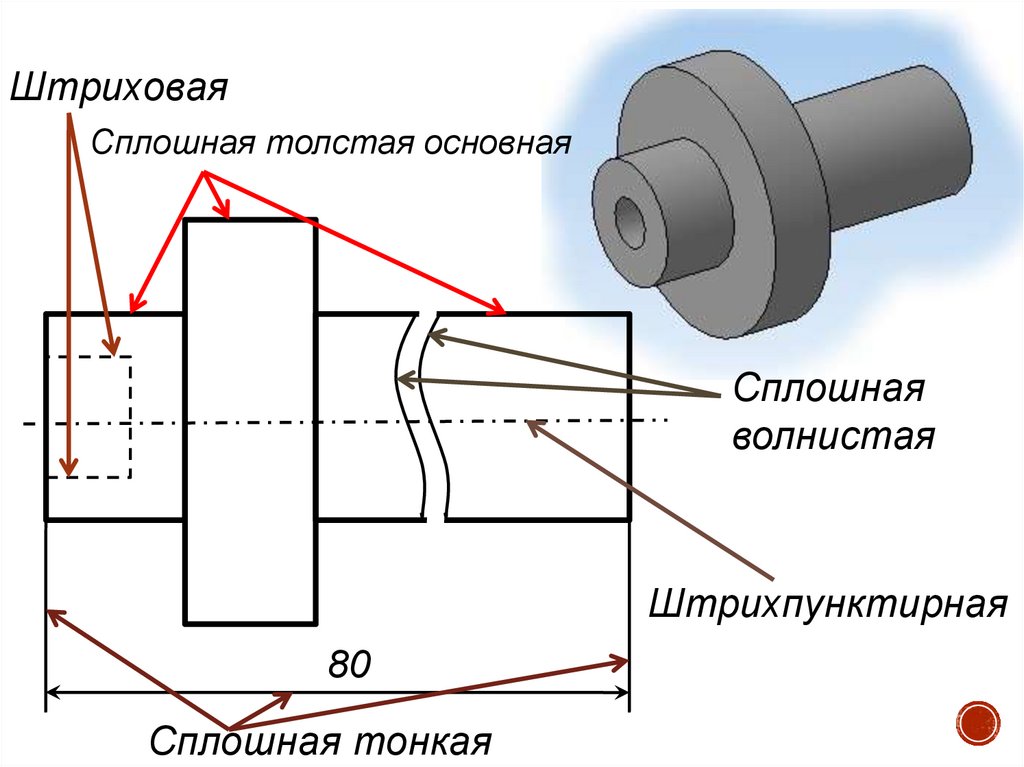 слое построение – линии построения, в слое осевые – осевые линии, в