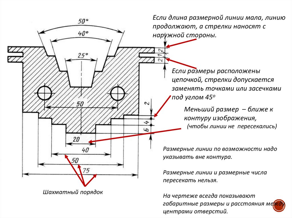 Наносить размеры на чертежах в виде замкнутой цепи не