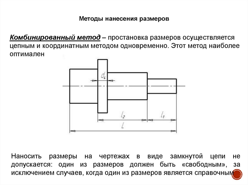 Методы нанесения размеровКомбинированный метод – простановка размеров осуществляется