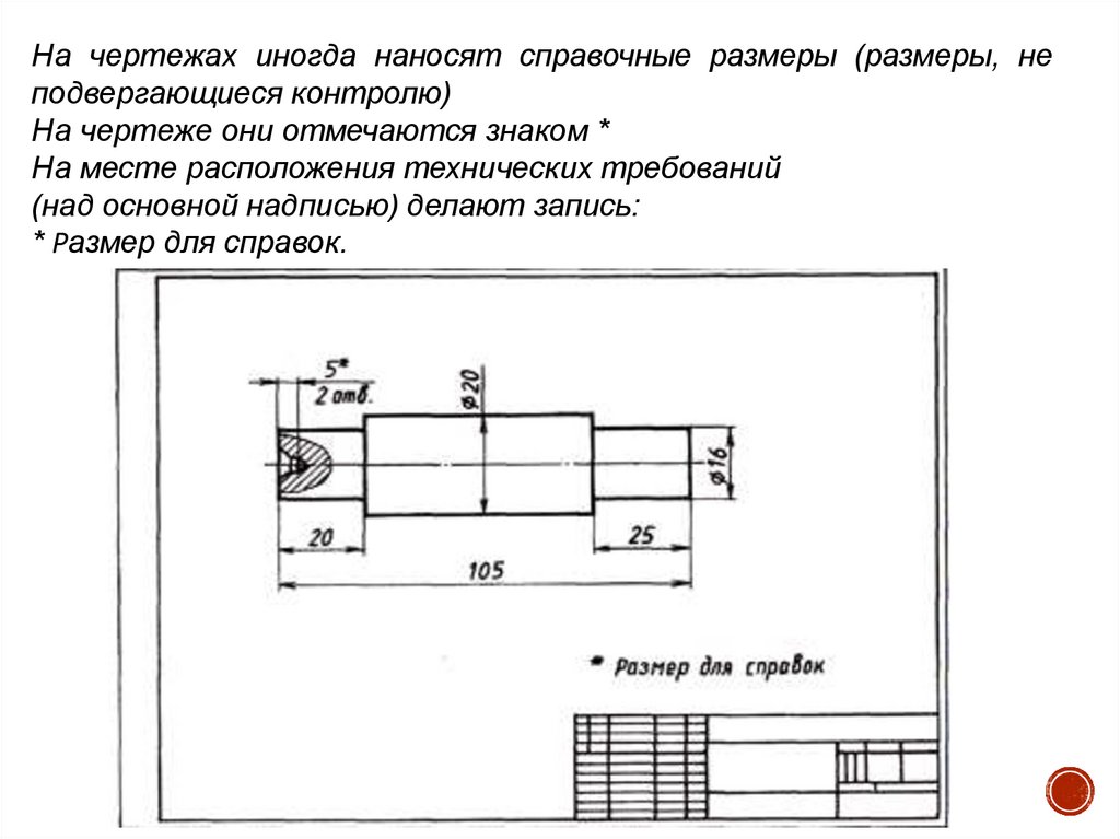 На чертежах иногда наносят справочные размеры (размеры, неподвергающиеся контролю)