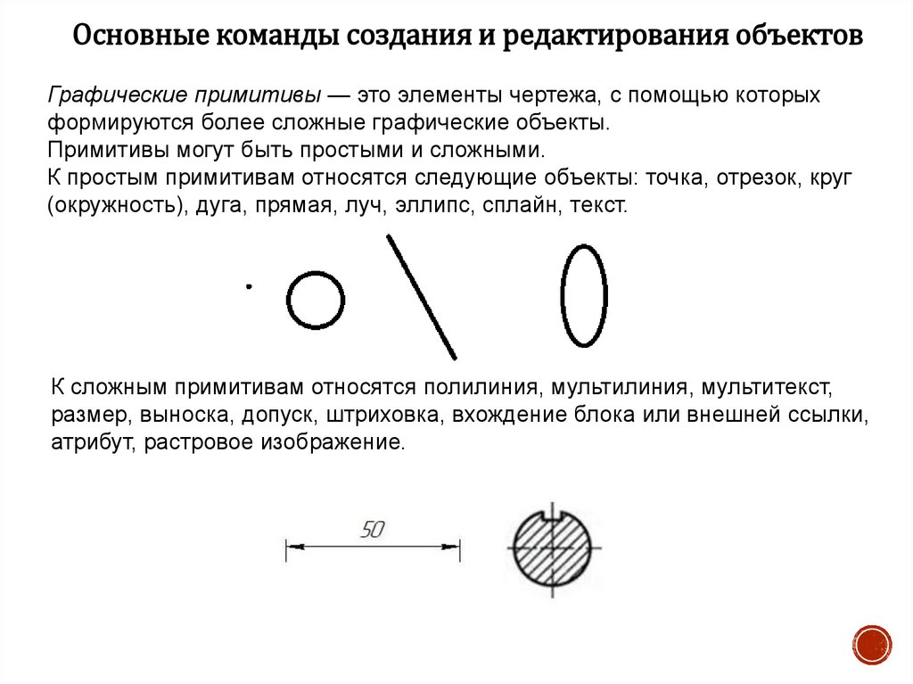 Основные команды создания и редактирования объектовГрафические примитивы — это элементы чертежа, с помощью которых