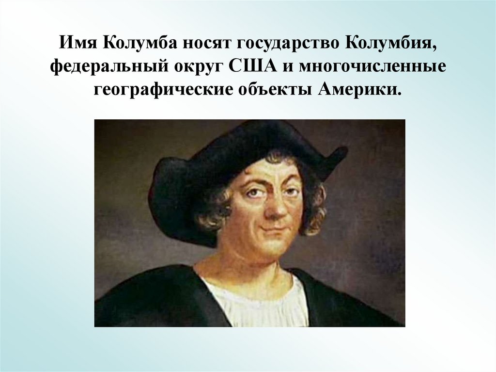 Имя Колумба носят государство Колумбия,федеральный округ США и многочисленные