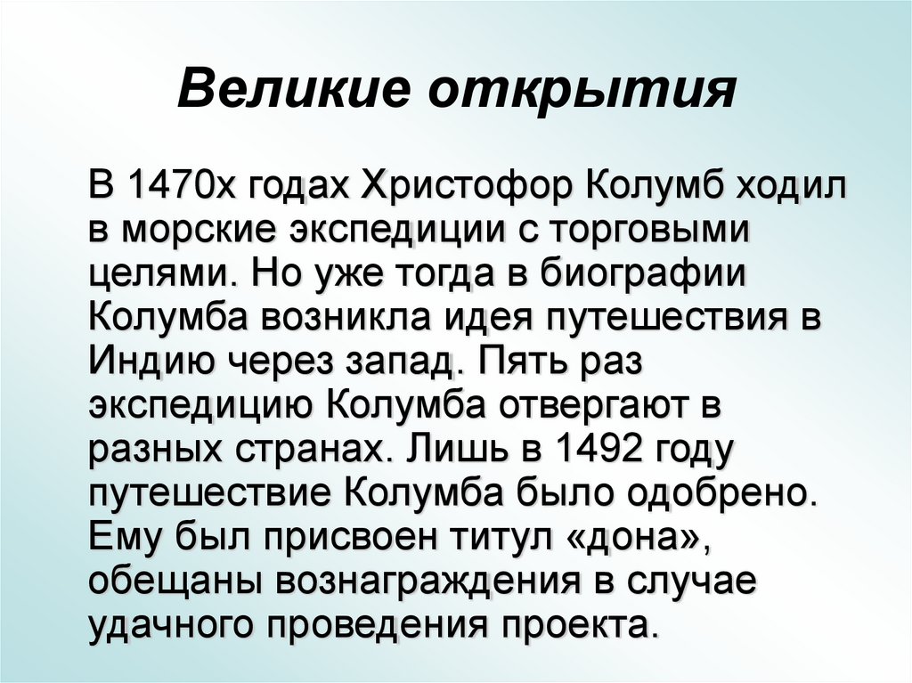 Великие открытияВ 1470х годах Христофор Колумб ходил