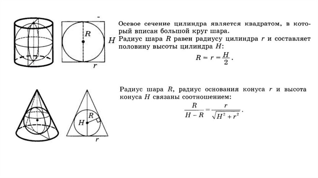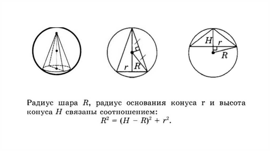 Радиус сферы – радиус основания.