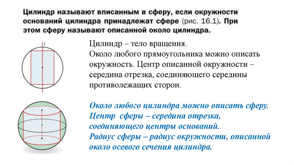 Цилиндр – тело вращения.Около любого прямоугольника можно описать