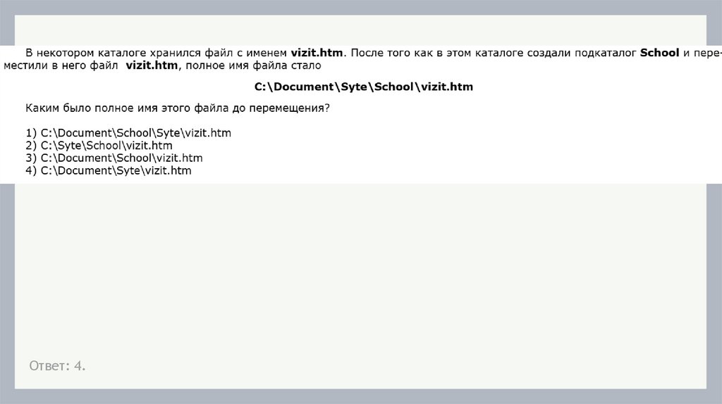 ЗАДАНИЕЗапишите (в ОС Windows) полные имена всех файлов, размещённых на