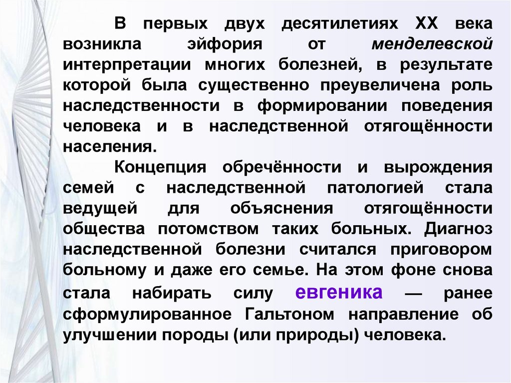 • На рубеже XX и XXI веков медицинская генетика занялалидирующее место в медико-биологической науке,