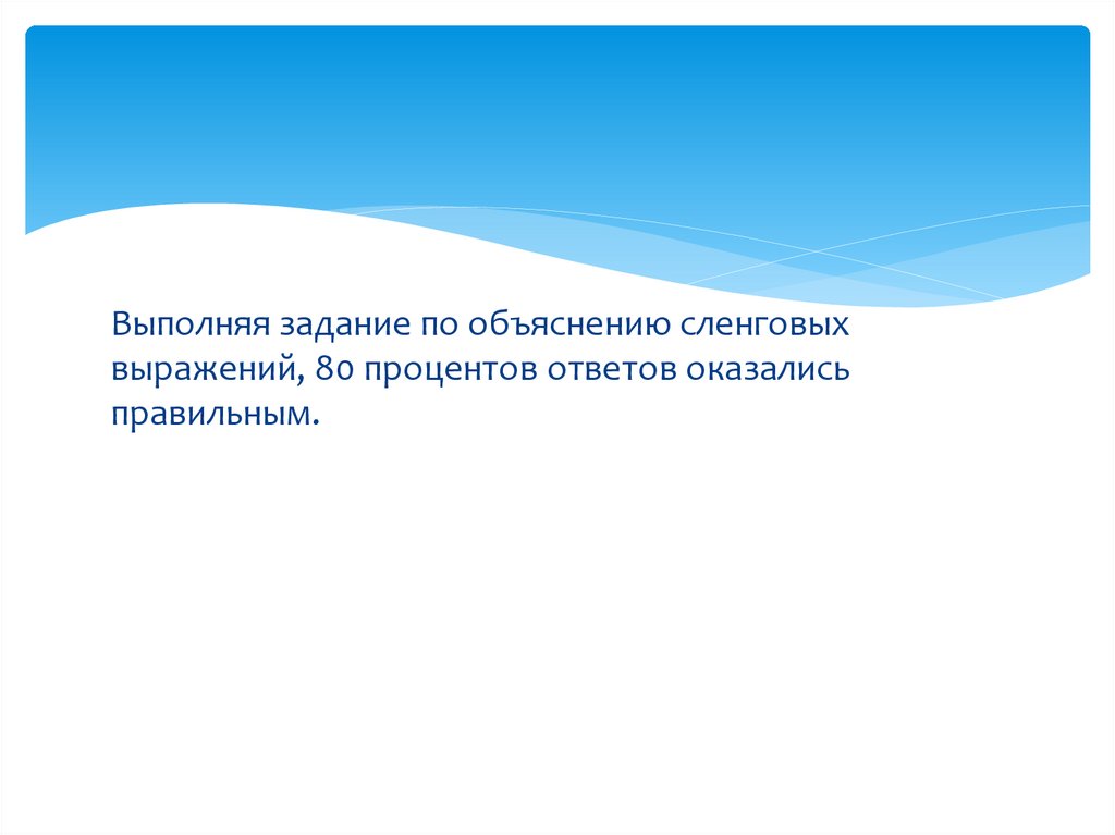 Выполняя задание по объяснению сленговыхвыражений, 80 процентов ответов оказались