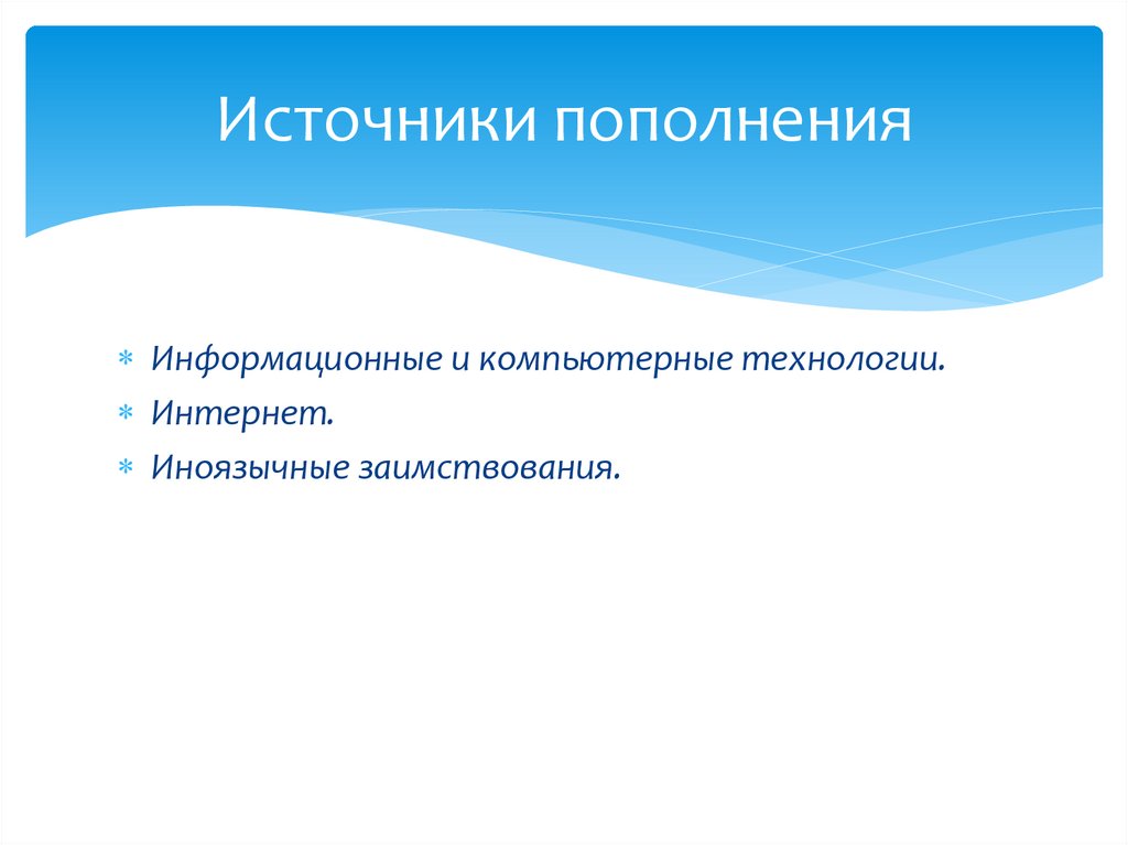 Источники пополненияИнформационные и компьютерные технологии.