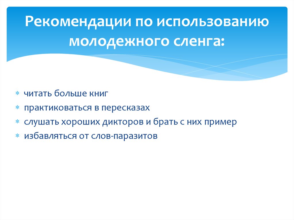 Рекомендации по использованиюмолодежного сленга:
