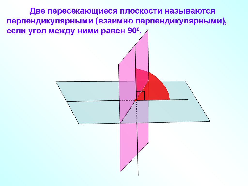 Две пересекающиеся плоскости называютсяперпендикулярными (взаимно перпендикулярными),