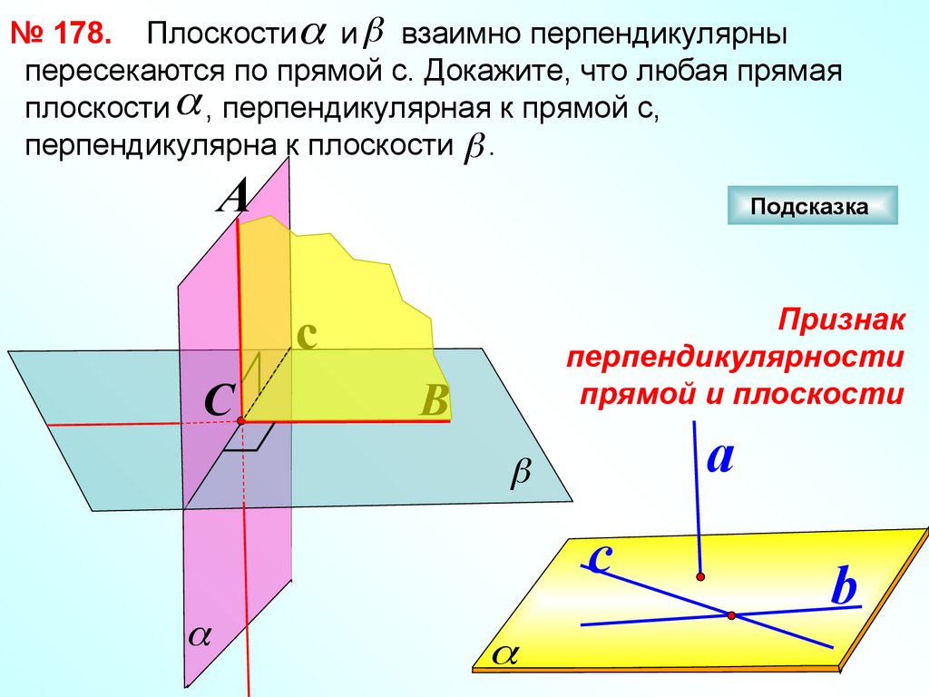 № 178. Плоскости и взаимно перпендикулярныпересекаются по прямой с. Докажите, что любая прямая