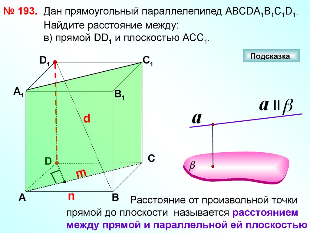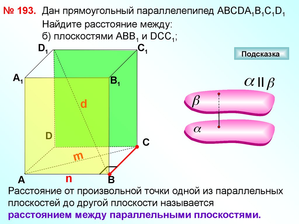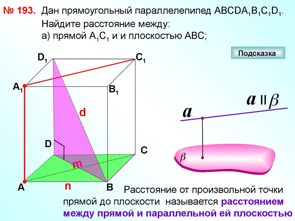№ 193. Дан прямоугольный параллелепипед АВСDА1В1С1D1.Найдите расстояние между: