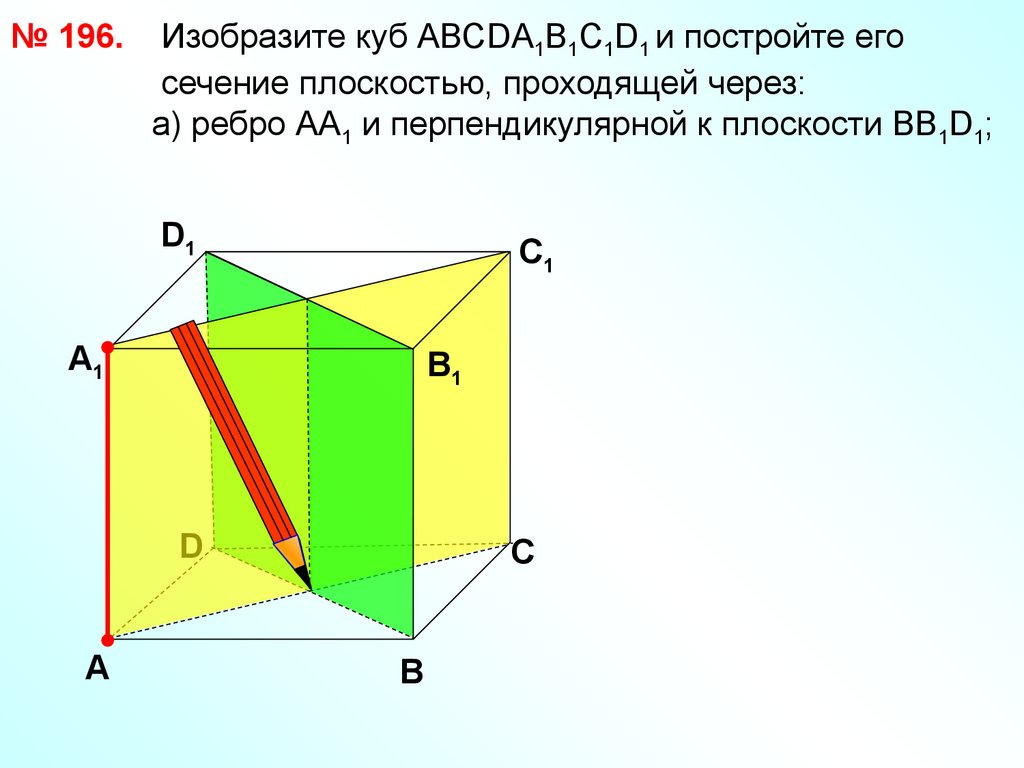 № 196.Изобразите куб АВСDА1В1С1D1 и постройте его