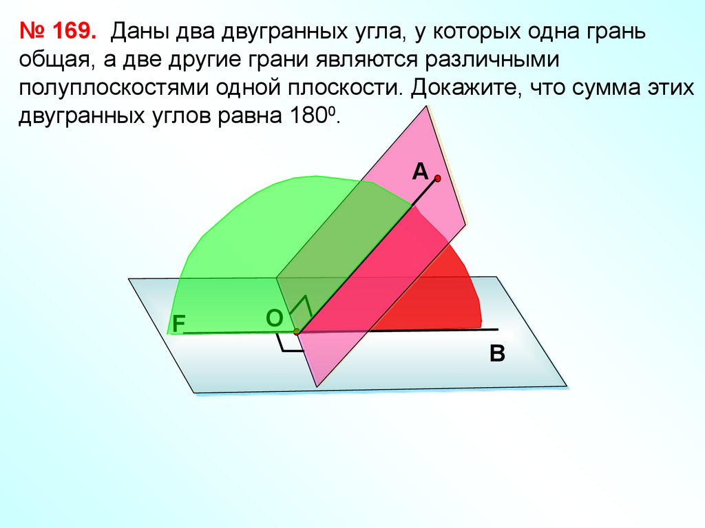 № 169. Даны два двугранных угла, у которых одна граньобщая, а две другие грани являются различными