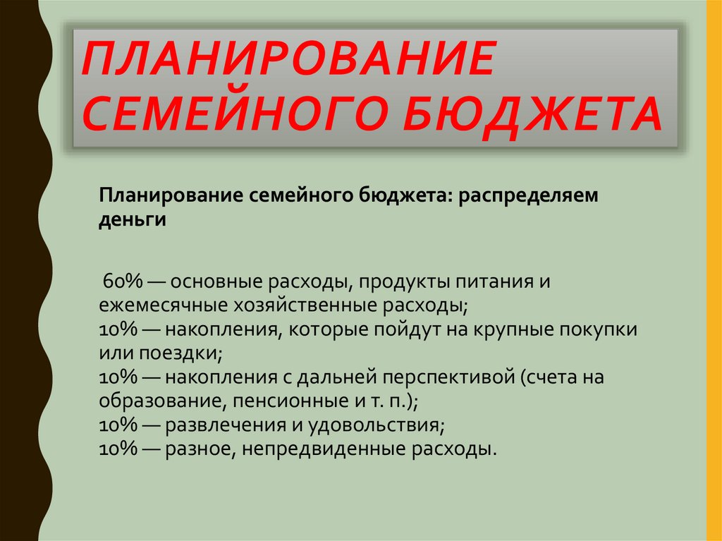 ПЛАНИРОВАНИЕСЕМЕЙНОГО БЮДЖЕТА