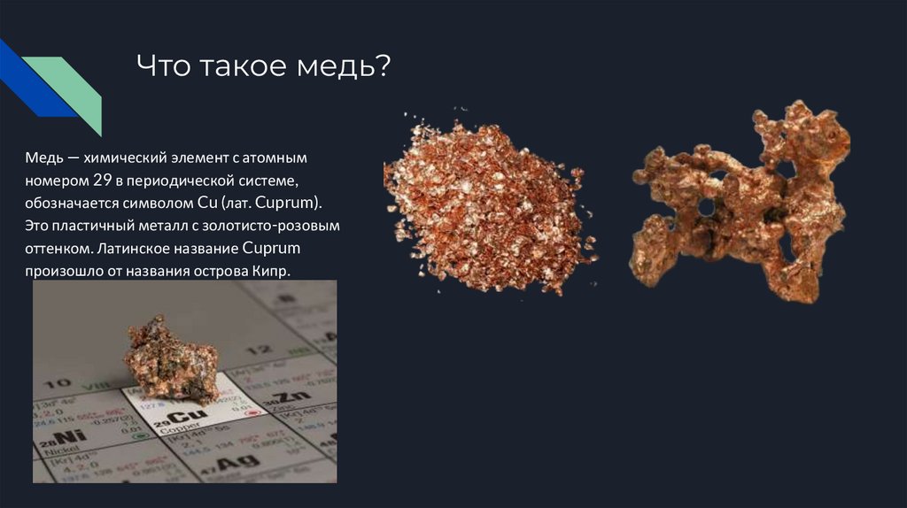 Содержание в природеИногда медь встречается в самородном виде, масса