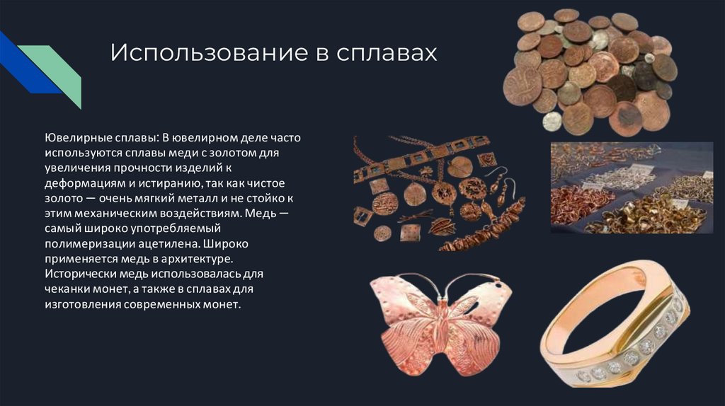 Использование в сплавахЮвелирные сплавы: В ювелирном деле часто