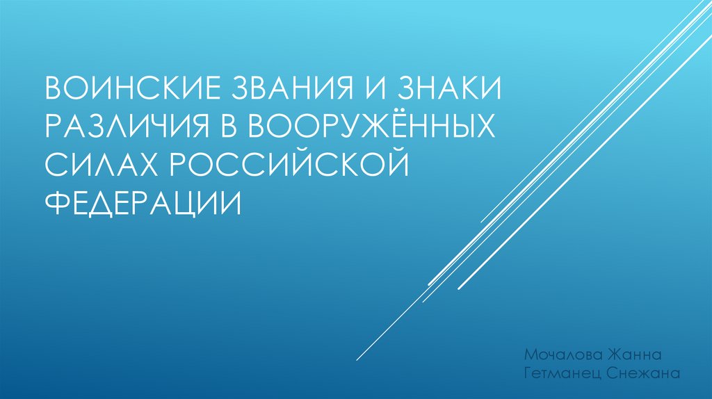 ВОИНСКИЕ ЗВАНИЯ И ЗНАКИРАЗЛИЧИЯ В ВООРУЖЁННЫХ